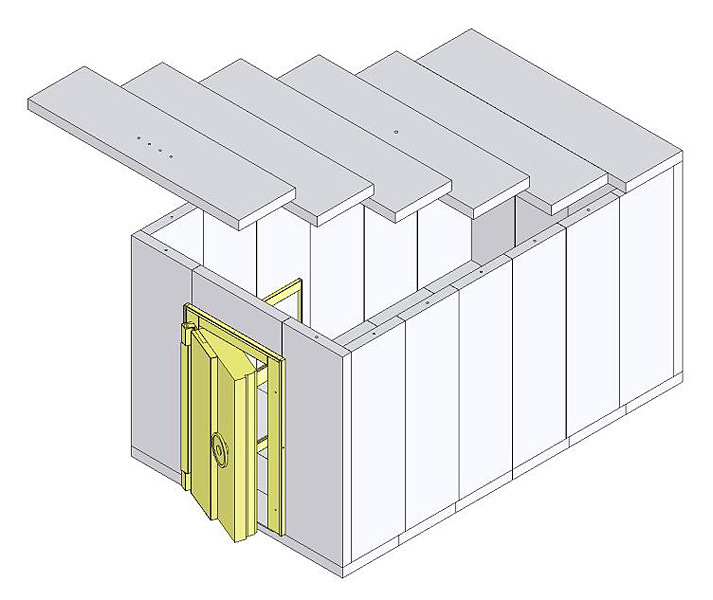 On design configurations, we can be extremely flexible. Vaults of almost any size can be constructed. Standard size panels are used whenever possible and panels of alternate sizes produced to provide the exact dimension required to meet the specific measurement of the vault. The vault door and HVAC port(s) can be placed in virtually any location. New panels can be used to retrofit older vaults or other existing structures in order to increase the level of protection.