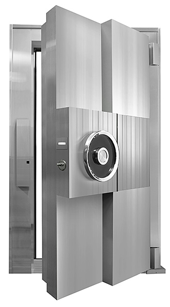 All exposed metal surfaces are finished in a gleaming stainless steel including the massive full length locking bar, door edges and jamb area creating a totally maintenance free door.