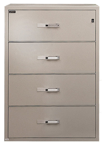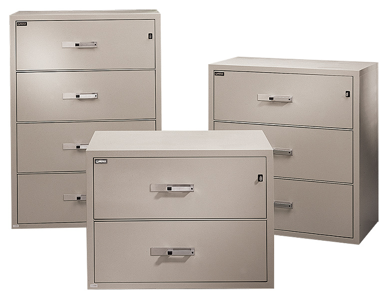 Gardex fire-resistant lateral filing cabinets come equipped with gang lock, selective locking system, suspension system and a 3-arm SwayGard system to minimize torque.